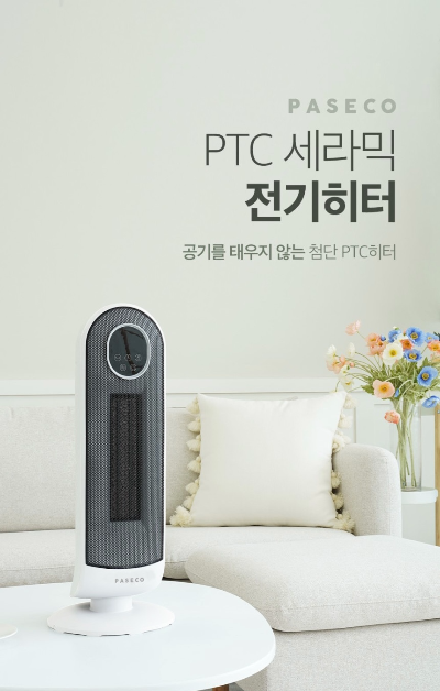 -난로 1등 기업 파세코에서 만든 제품 PTC 세라믹 전기히터는 전기 에너지의 97%를 열에너지로 전환하여 고효율을 자랑합니다.