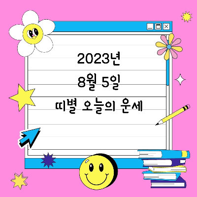 오늘은 2023년 8월 5일 토요일입니다. 오늘 하루를 시작하며 재미로 볼 수 있는 띠별 오늘의 운세에 대해 정리해 놓았으니 참고하셔서 오늘 하루도 좋은 하루 보내길 바랍니다.