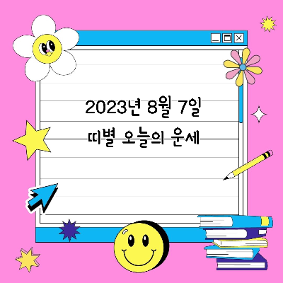 오늘은 2023년 8월 7일 월요일입니다. 오늘 하루를 시작하며 재미로 볼 수 있는 띠별 오늘의 운세에 대해 정리해 놓았으니 참고하셔서 오늘 하루도 좋은 하루 보내길 바랍니다.